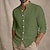 Voor heren Overhemd Linnen overhemd Zomer overhemd Strand Kleding Overhemd met bandkraag Overhemd met knopen Effen Kleur Casual Vakantie blauw Zwart Wit Oranje Lange mouw Mandarijn Kraag Zomer Lente