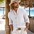 Voor heren Overhemd linnen overhemd Katoenen linnen overhemd Zomer overhemd Strand hemd Effen Vakantie Casual Zwart Wit Blozend Roze Blauw Korte mouw V-hals Zomer Kleding Trekkoord