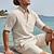 Voor heren Overhemd Linnen overhemd Zomer overhemd Strand Kleding Overhemd met bandkraag Overhemd met knopen Effen Vakantie Curise Zwart Wit Oranje Grijs Korte mouw Mandarijn Kraag Zomer Kleding