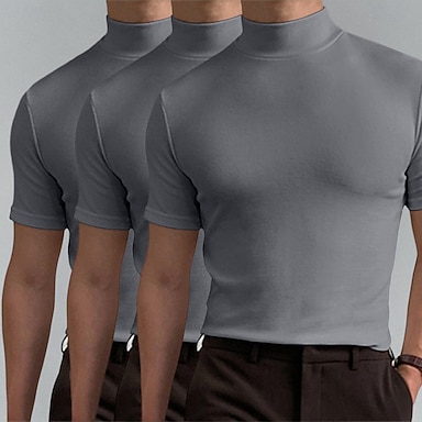 Voor heren T-shirt Coltrui Korte mouw Opstaand Zomer Lente Effen Modieus Casual Comfortabel 3-stuks Multipack Vakantie Straat Feestdagen A B C Top T-shirt voor mannen
