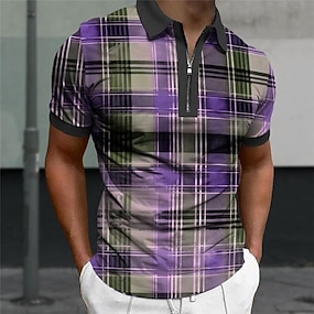 Voor heren Ruitjes Polo Korte mouw Poloshirt Overhemden met kraag Zakelijk informeel Buiten School Alledaagse kleding 3D-afdrukken Zomer blauw Donkergroen Paars