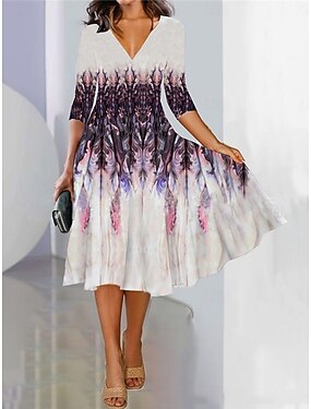Dames Halflange jurk A lijn jurk Vakantie Casual Feestdagen Afspraakje Normale pasvorm Bloemig Grafisch Korte mouw V-hals blauw Lichtgroen Rood Paars Zomer Lente