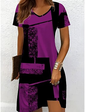 Dames Mini-jurk Casual jurk T shirt jurk Zonnejurk A lijn jurk Casual Normale pasvorm Grafisch Geometrisch Korte mouw V-hals Rood blauw Paars Bruin Zomer Lente