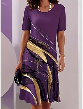 Dames Halflange jurk Hemdjurk T shirt jurk Zomerjurk Casual Dagelijks Normale pasvorm Grafisch Abstract Korte mouw Strakke ronde hals blauw Paars Groen Grijs Zomer Lente
