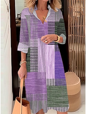 Dames Jurk Set Hemdjurk Zomerjurk Elegant Grafisch Geometrisch Meerlaags Afdrukken Halflange jurk 3/4 mouw Strakke ronde hals Dagelijks Vakantie blauw Paars Groen Zomer Lente Normale pasvorm