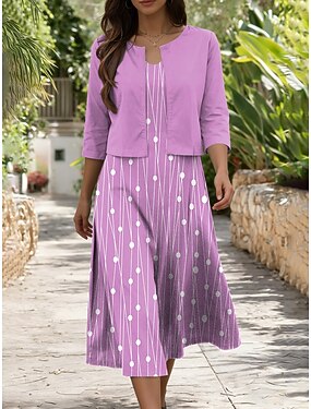 Dames Jurk Set A lijn jurk Elegant Casual Grafisch Geometrie Meerlaags Afdrukken Halflange jurk Halve mouw V-hals Dagelijks blauw Blozend Roze Paars Zomer Lente Normale pasvorm