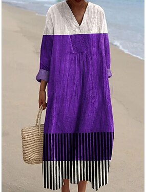 Dames Maxi-jurk Zonnejurk Zomerjurk Vakantie Casual Boho Dagelijks Strand Uitgaan Normale pasvorm Bloemig Grafisch Kleurenblok Lange mouw V-hals blauw Zwart Paars Zomer Lente