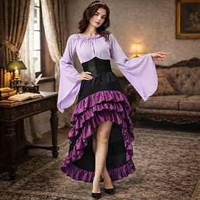 Elegant Punk & Gothic Middeleeuws Rok Blouse / overhemd Feestkostuum Normaal Flare manchet mouw Dienstmeisje Pakken Piraat Viking Country Girl Vriendelijke vrouw Schouderafhangend Klassiek Trompet