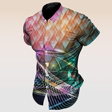 Voor heren Geometrisch Verloop Golven Overhemd Zomer overhemd Overhemd met knopen Korte mouw Mode-casual Buiten Vakantie Dagelijks gebruik Zomer Lente Strijkijzer 3D-afdrukken shirts met kraag