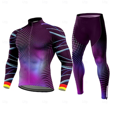 Voor heren Wielrenshirt met strakke wielrenbroek Wielrenshirt Lange mouw Winter Herfst blauw Paars Groen Grafisch Verloop Gestreept Fietsen Thermisch Warm 3D-pad Sneldrogend Anatomisch ontwerp