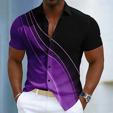 Voor heren Geometrisch Overgangskleur Lijn Overhemd Overhemd met knopen Korte mouw Mode-casual Dagelijks Buiten Vakantie Zomer Lente Strijkijzer 3D-afdrukken Linnenachtig shirt blauw Paars Groen Grijs