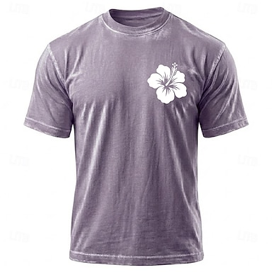Voor heren Bloemig Hawaii T-shirt Minerale wassing T-shirt Korte mouw T-shirt Zuurwas Strakke ronde hals Overhemd Vakantie Vintage Retro Casual Strand Reizen blauw Paars Grijs Zomer Lente Kleding M L