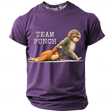 Heren team Punch Monkey die een vriend meesleurt, grappig, humoristisch, sarcastisch dierenmeme-shirt met korte mouwen, ronde hals, casual streetwear, sportshirt, designerkleding, maten S, M, L, XL,