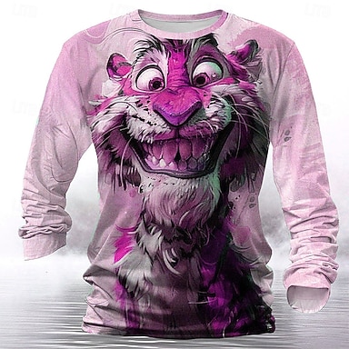 Voor heren dier Grappig T-shirt Henley-shirt Lange mouw T-shirt 3D-afdrukken Strakke ronde hals Overhemd Ontwerper Retro vintage Straat Casual Dagelijks Rood Paars Groen Zomer Lente Herfst Kleding S