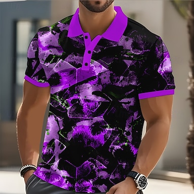 Voor heren Meetkundig Poloshirts Korte mouw Poloshirt Revers Casual Sportkleding 3D-afdrukken Knop Lente zomer blauw Paars Groen