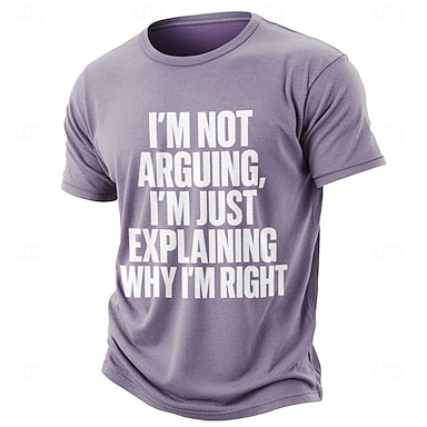 Gewassen, verweerd katoenen T-shirt. Ik ben niet aan het ruzieën, ik leg alleen uit waarom ik gelijk heb. Grappig, sarcastisch, paars T-shirt. Kleding. Maten: S, M, L, XL, XXL, XXXL.