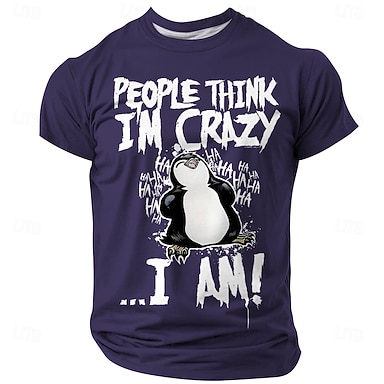 Mannen Grappige Grafische Tee - 'Mensen Denkeun Dat Ik Gek Ben... Dat Ben Ik!' Humoristische Pinguïn Lifestyle Korte Mouwen Shirt