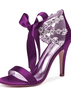 Damessandalen met satijnen enkelbandje en stilettohak, versierd met kristallen – elegante hakken voor avondfeesten, banketten en bruiloften, verkrijgbaar in diverse kleuren.