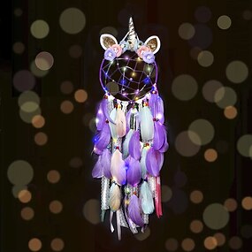eenhoorn dromenvanger met kleurrijk led-licht voor meisjes jongens slaapkamer wand decor opknoping ornament festival cadeau (roze)