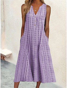 Dames Halflange jurk Imitatie katoenlinnen Hemdjurk Zonnejurk Tank-jurk Actief Modieus Dagelijks Buiten Weekend Ruim Passend Ruitjes Mouwloos V-hals blauw Zwart Blozend Roze Paars Zomer Lente