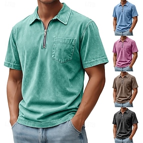 Voor heren Acid Wash-shirt Katoenen poloshirt Casual Kwart ritssluiting Korte mouw Vintage Basic Effen Kleur Effen Zak Verdrietig Zomer Normale pasvorm Zwart Lichtgroen Blozend Roze Marineblauw Paars