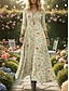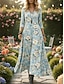 Dames Maxi Jurk Casual Jurk Casual Vakantie Losse Pasvorm Bloem Grafisch Linnenachtige 3/4 Lengte Mouw Crew Neck Blauw Lichtpaars Groen Beige Lente Fall Winter