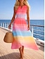 Dames Maxi Jurk Boho Zomerjurk A-lijn Jurk Slip Jurk Vakantie Casual Strand Reguliere Pasvorm Ombre Graphic Etnisch Mouwloos V-hals Spaghetti Band Blauw Paars Oranje Groen Zomer Lente Fall
