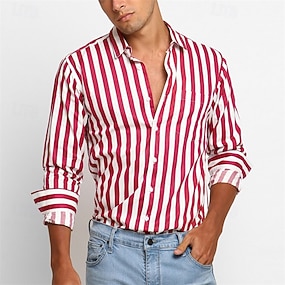 Voor heren Overhemd Overhemd met knopen Streep Bruiloft Feest Zwart Wit Rood Donkergroen Lange mouw Revers Lente & Herfst Kleding