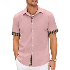 Voor heren Overhemd Zomer overhemd Normaal shirt Strand hemd Overhemd met knopen Licht Roze Korte mouw Effen Revers Vakantie Hawaii Kleding Polyester Modieus Casual Comfortabel