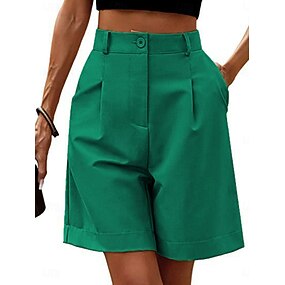 Dames korte broek Wafelstof Chinese Korte broek Vakantie Modieus Streetwear Knielengte Hoge taille Effen Elastische tailleband Comfortabel Comfort Zacht Rekbaar Dagelijks Buiten Straat Groen Khaki