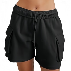 Dames Cargoshorts Chinese Korte broek Zomer korte broeken Vakantie Modieus Sport Knielengte Hoge taille Effen Kleur Trekkoord Lapwerk Zak Comfort Zacht Ademend Inelastisch Dagelijks Streetwear Strand