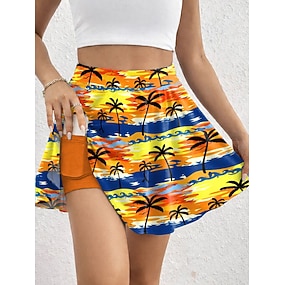 Dames Vakantierok Elegant Modieus Hawaii Badmoe Broekjes Boven de knie Hoge taille Rokken Bloemig Grafisch Afdrukken Rekbaar Dagelijks Strand Geel Rood Blauw Groen Zomer Polyester