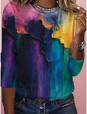 Dames T-shirt Afdrukken Grafisch Verloop Vintage Stijlvol Klassiek Lange mouw Gekerfde nek Normale tops Dagelijks Weekend Licht Blauw Lente Herfst Winter