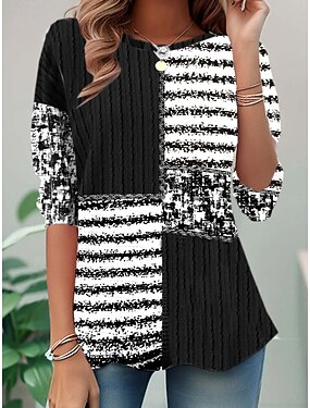 Dames T-shirt Afdrukken Grafisch Geometrisch Oceaan Modieus Stijlvol Klassiek Lange mouw Strakke ronde hals Normale tops Dagelijks Weekend blauw Zwart Wit Blozend Roze Zomer Lente Herfst