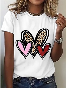 dames t-shirt stijlvol casual print korte mouw normale tops ronde hals dagelijks wit rood groen zomer