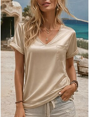 Dames T-shirt Effen Modieus Stijlvol Klassiek Korte mouw V-hals Normale tops Dagelijks Uitgaan Weekend Zwart Blozend Roze Groen Khaki Beige Zomer Lente