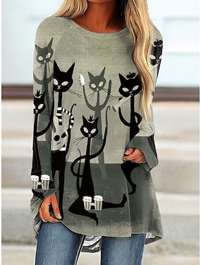Dames T-shirt Zwarte Kat Lange Mouw Grafisch Dier Vintage Stijlvol Klassiek Lange Mouw Crewneck Ronde Hals Lange Tops Dagelijks Print Roze Blauw Groen Lente Herfst Voorherfst