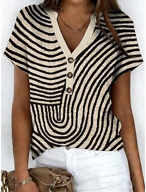 Dames T-shirt Afdrukken Gestreept Modieus Stijlvol Klassiek Korte mouw V-hals Normale tops Dagelijks Uitgaan Weekend Zwart Zomer Lente