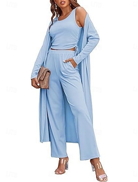 Dames Broeken Sets Lange mouw Ronde hals Effen Kleur Modieus Streetwear Casual Dagelijks Buiten blauw Zwart Blozend Roze Zomer Normale pasvorm