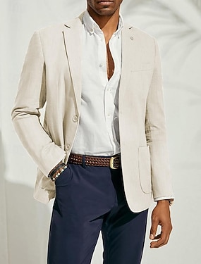 Voor heren Blazerjack Sportjas Inkeping kraag Modieus Casual Effen Linnen blazer Donkerblauw Beige Licht Blauw Getailleerd Enkele rij knopen met twee knopen