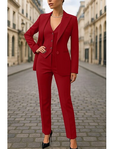Dames 3-delige pakken Formeel Bruiloft gast Stretch crêpe Elegant Eenvoudig minimalistische Lange mouw Tot de enkel Piek revers Enkele rij knopen