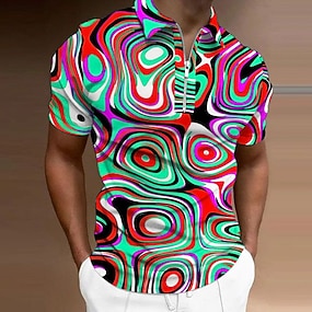 Voor heren Abstract Meetkundig Polo met rits Korte mouw Strijkijzer Modern Casual / sportief Sportkleding Casual / Dagelijks 3D-afdrukken Zomer Roodborstje Rood Rood