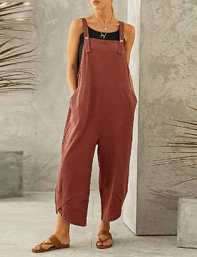 Dames Normaal Broeken Jumpsuit Babypakje Modieus Enkellengte Medium Taille Effen Zijzakken Breed Been Comfort Micro-elastisch Casual Weekend blauw Zwart Stoffige roos Rood Zomer Lente & Herfst Ruim