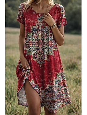 Dames Halflange jurk Casual jurk Zomerjurk Boho-jurk Streetwear Vakantie Straat Feestdagen Normale pasvorm Grafisch Korte mouw V-hals Blozend Roze Rood Marineblauw blauw Zomer