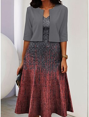 Woman's Twee Delige Jurksets Midi Jurk met Jas Elegante A-lijn Jurk Halve Mouw Casual Semi-formeel Ombre Grafische Print V-hals Date Zwart Roze Rood Lente Herfst Regular Fit