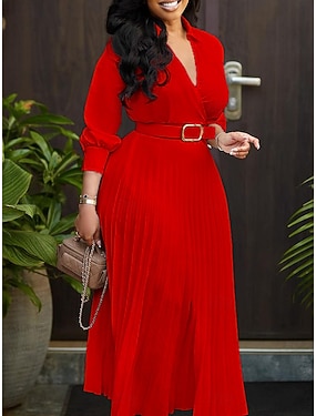 Dames Halflange jurk A lijn jurk Elegant Vakantie Casual Werk Straat Afspraakje Normale pasvorm Effen Kleur Lange mouw V-hals blauw Zwart Wit Rood Lente Herfst Winter