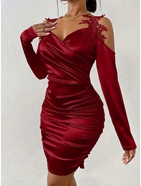 Valentijnsdag Dames Mini-jurk Schede jurk Off-the-shoulder jurk Elegant Feest cocktail Buiten Feest Bruiloft gast Met ruches Normale pasvorm Effen Kleur Lange mouw Bandje Zwart Rood Beige