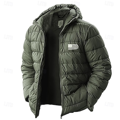 Voor heren Amerikaanse Amerikaanse vlag Winterjas Donsjas Pufferjas Thermisch Warm Regenbestendig Lichtgewicht Casual Buiten Dagelijks Gewatteerde gewatteerde capuchonjas Herfst Winter Capuchon Lange