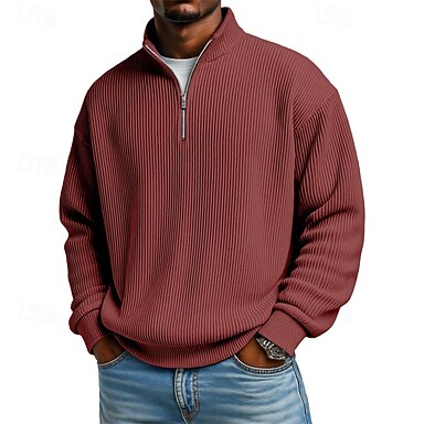 Voor heren Trui Geribd breien Normale tops Rits omhoog Gebreid Effen Opstaand Gebreid Modern eigentijds Casual Alledaagse kleding Kleding Herfst Winter Diep Paars Kameel M L XL