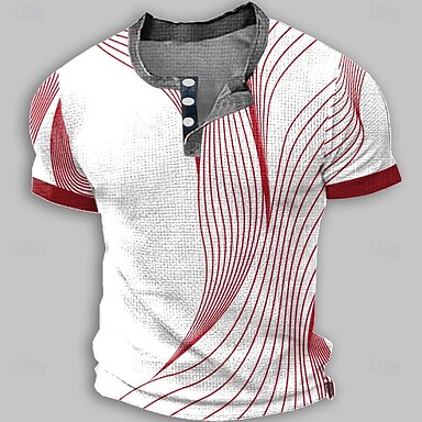 Voor heren Abstract Geometrisch T-shirt Henley-shirt Korte mouw Ontwerper Retro vintage Casual Casual Dagelijks Straat Zomer Lente Meerblauw Zwart Rood Marineblauw Henley Henley-T-shirt